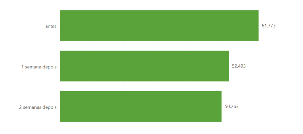 Em relação ao ticket médio, houve um aumento de R$ 118,06 para R$ 125,01, uma variação de 5,9%. Na semana anterior à crise, o valor era de R$ 136,61.