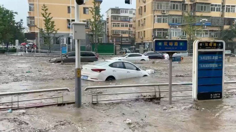 Chuva em Pequim após tufão transforma ruas em rios e deixa 2 mortos